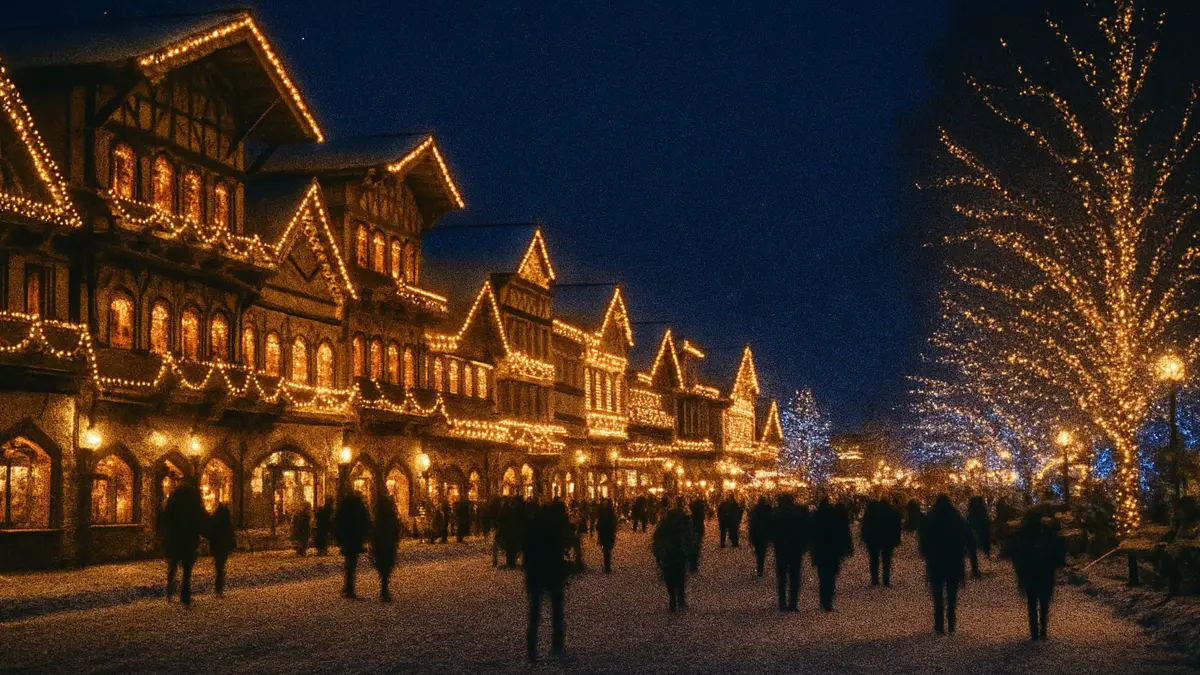 Immersa nelle Cascade Mountains, Leavenworth è l’esempio di come la riqualificazione urbana possa creare un’esperienza immersiva. Ridisegnata negli anni ’60 con un’architettura in stile bavarese, questa cittadina incanta, specialmente durante il suo famoso “Village of Lights”. Ogni anno, più di mezzo milione di luci LED avvolgono il centro. Non è solo un evento natalizio, è un periodo che si estende per gran parte dell’inverno. I visitatori possono assistere a spettacoli di canti natalizi, acquistare artigianato fatto a mano, e gustare un autentico Lebkuchen caldo, sentendosi proiettati in un’antica fiaba europea. Un vero villaggio delle luci invernali USA, perfetto per le famiglie in cerca di magia.