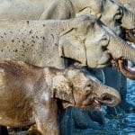L’autrice del video Belinda Joubert, 56 anni, ha detto che lei e quelli con lei sono stati i primi ad arrivare sulla scena per assistere alla sfida degli elefanti nel Parco nazionale di Pilanesberg in Sud Africa.