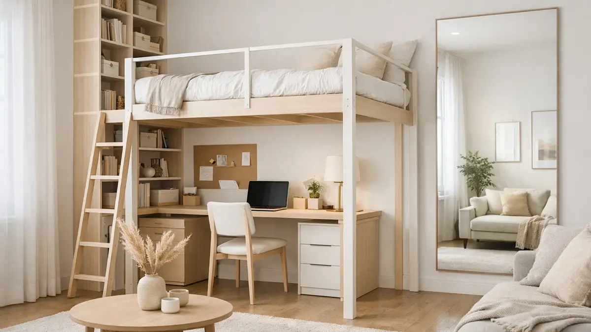- Zona Notte: Se il soffitto è sufficientemente alto, il letto a soppalco rimane la soluzione definitiva per separare l’area riposo dallo spazio studio o relax sottostante.