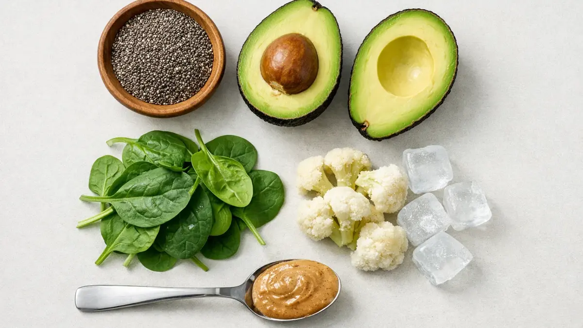 Un esempio sorprendente è il cavolfiore surgelato. Sebbene possa sembrare una scelta bizzarra per una bevanda dolce, il cavolfiore cotto al vapore e poi congelato aggiunge una cremosità incredibile senza alterare il sapore, apportando fibre e micronutrienti con un impatto calorico minimo. Allo stesso modo, l’uso delle zucchine crude (povere di sapore ma ricche di acqua e potassio) permette di aumentare il volume del frullato, ingannando i recettori di stiramento dello stomaco che segnalano la sazietà meccanica.