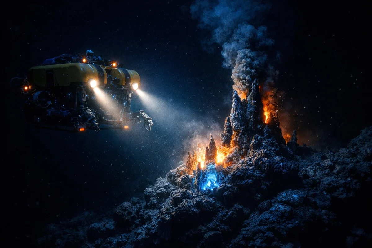 La vera sorpresa dell’esplorazione profonda non è però geologica, ma biologica. Fino a pochi decenni fa, si pensava che la vita dipendesse esclusivamente dalla fotosintesi. Senza luce, si credeva ci fosse solo il deserto. La scoperta delle sorgenti idrotermali — fumaioli neri che espellono acqua ricca di minerali a temperature altissime — ha sconvolto questa certezza. Qui, la vita fiorisce grazie alla chemiosintesi: batteri che traggono energia dalle reazioni chimiche dei minerali, sostenendo intere catene alimentari di vermi giganti, granchi ciechi e pesci traslucidi.