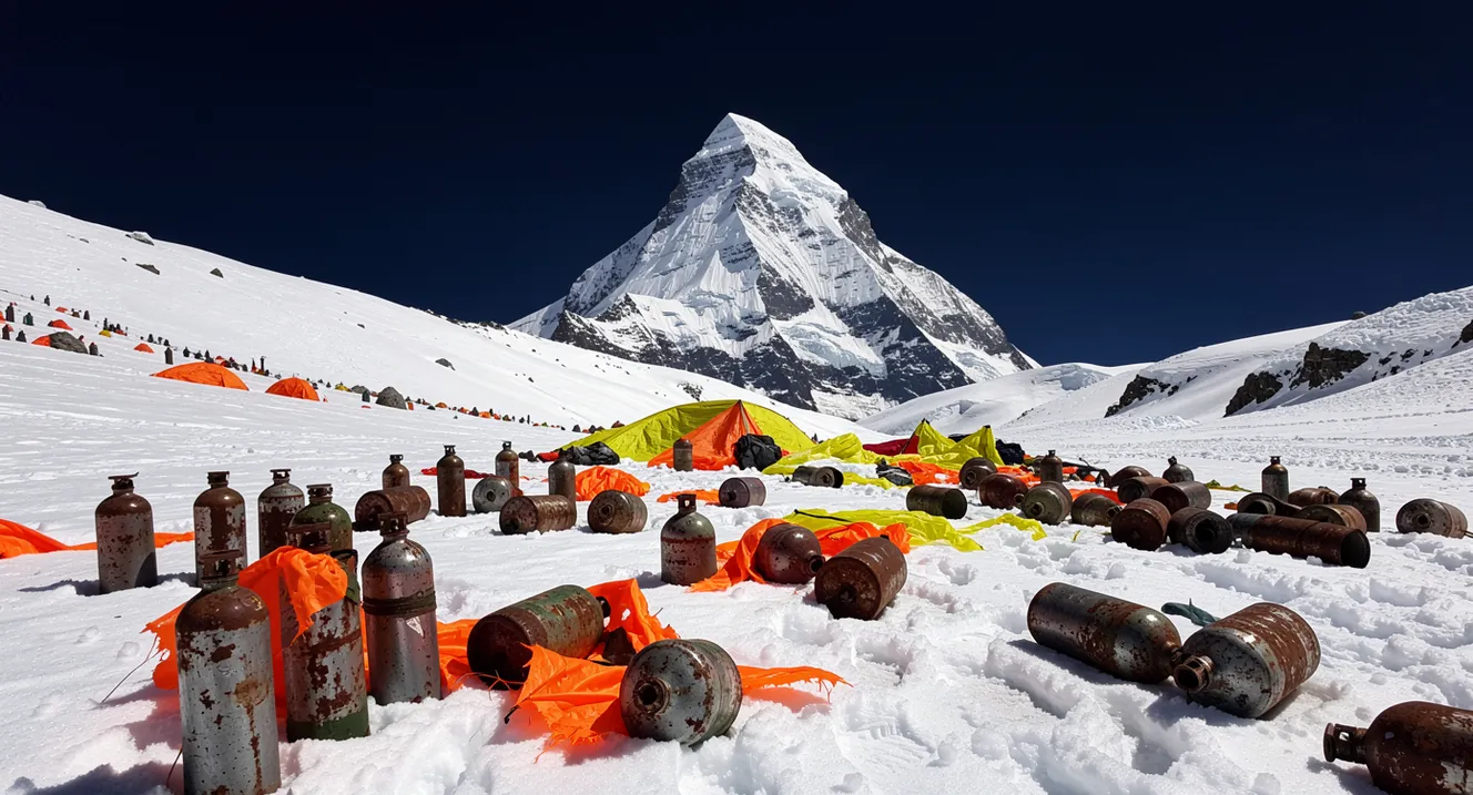 Per decenni, l’immagine collettiva del Monte Everest (Sagarmatha in nepalese, Chomolungma in tibetano) è stata quella di una vetta immacolata. Tuttavia, l’esplosione del turismo d’alta quota e la democratizzazione delle spedizioni commerciali hanno trasformato i campi base e le vie di risalita in veri e propri depositi a cielo aperto. Dalle bombole d’ossigeno vuote alle tende sventrate dalle bufere, dalle lattine di cibo ai rifiuti umani che non si decompongono a causa delle temperature proibitive, la traccia lasciata dagli scalatori è diventata una cicatrice indelebile.